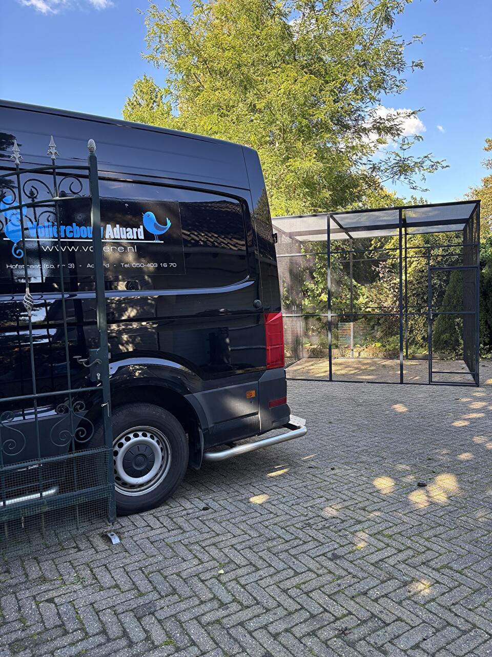 2 volieres voor zebravinken geplaatst 250cm hoog en 3x3m met polskanaal dak.